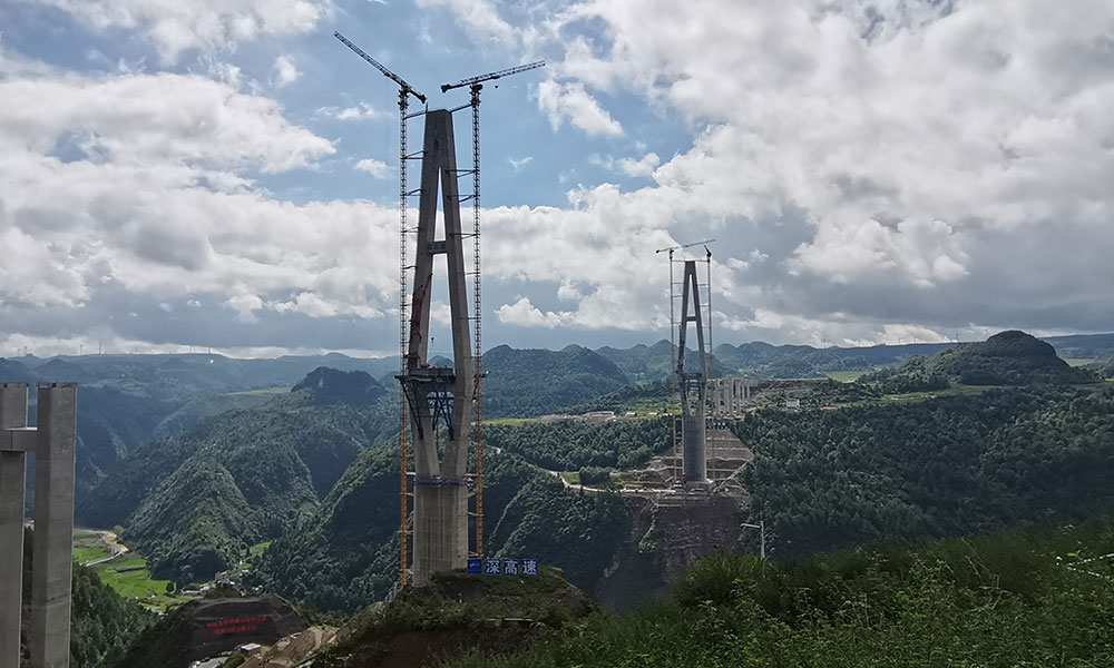 朵花特大桥项目为双塔双索面叠合梁斜拉桥,桥梁全长1260米,其中主跨528米,位居我国山区叠合梁斜拉桥前列,主桥桥宽30米,主塔高265米,主桥两侧设置3米宽玻璃景观步道,主塔安装140米高观光电梯,是世界第一峡谷景观桥。项目总投资11.38亿元,于2018年底开工,主塔分别于2021年1月、4月成功封顶,曾获得2020年度贵州省建筑安全文明施工样板工地,预计2022年完工。朵花特大桥建成后将成为贵州的地标建筑,打通贵州龙里重点旅游区及黔中内陆经济先导区内交通屏障,大大改善龙里核心旅游区的交通出行条件,对贵州龙里及贵阳旅游经济及居民出行、就业带来积极效益,积极推动黔中龙溪内陆开放型经济发展先导区以及龙里旅游业的发展,将成为多彩贵州的又一道靓丽的风景线。